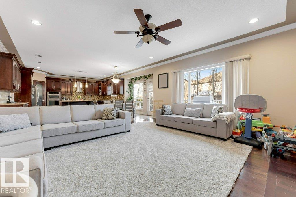 Must Be Experienced To Be Appreciated! Custom built 3491 sq/ft 2-storey home with show-home calibre finishes in prestigious Lakeland Ridge. Elegant chef's island kitchen with granite opens to the main floor family room featuring custom solid wood built-ins--perfect for upscale entertaining. Refined living and dining areas, a grand vaulted entry, crown mouldings, and main floor laundry enhance everyday luxury. Enjoy in-floor heating in the tiled kitchen, back hall, garage entry, and throughout the basement. Solid wood doors and cabinetry throughout. Offering 7 bedrooms and 5 full baths, including two upper-level primary suites--one with jacuzzi tub and steam shower--this turn-key home includes all custom window coverings. Comfort-height (36 in.) counters and a full Kohler plumbing package with one-piece toilets. Fully finished basement with 2 bedrooms, bar, and spacious entertainment area with surround sound and roughed-in projection. Insulated oversized attached double garage. Elevated deck with gas hookup.