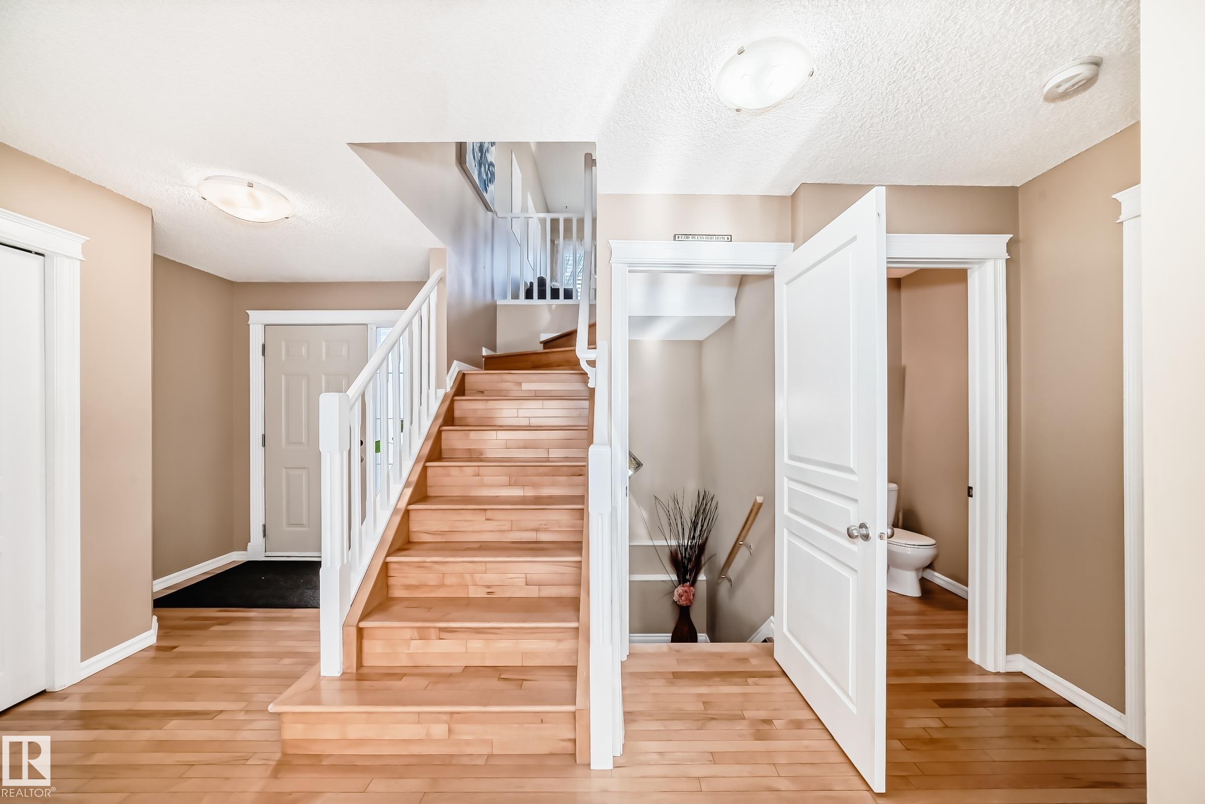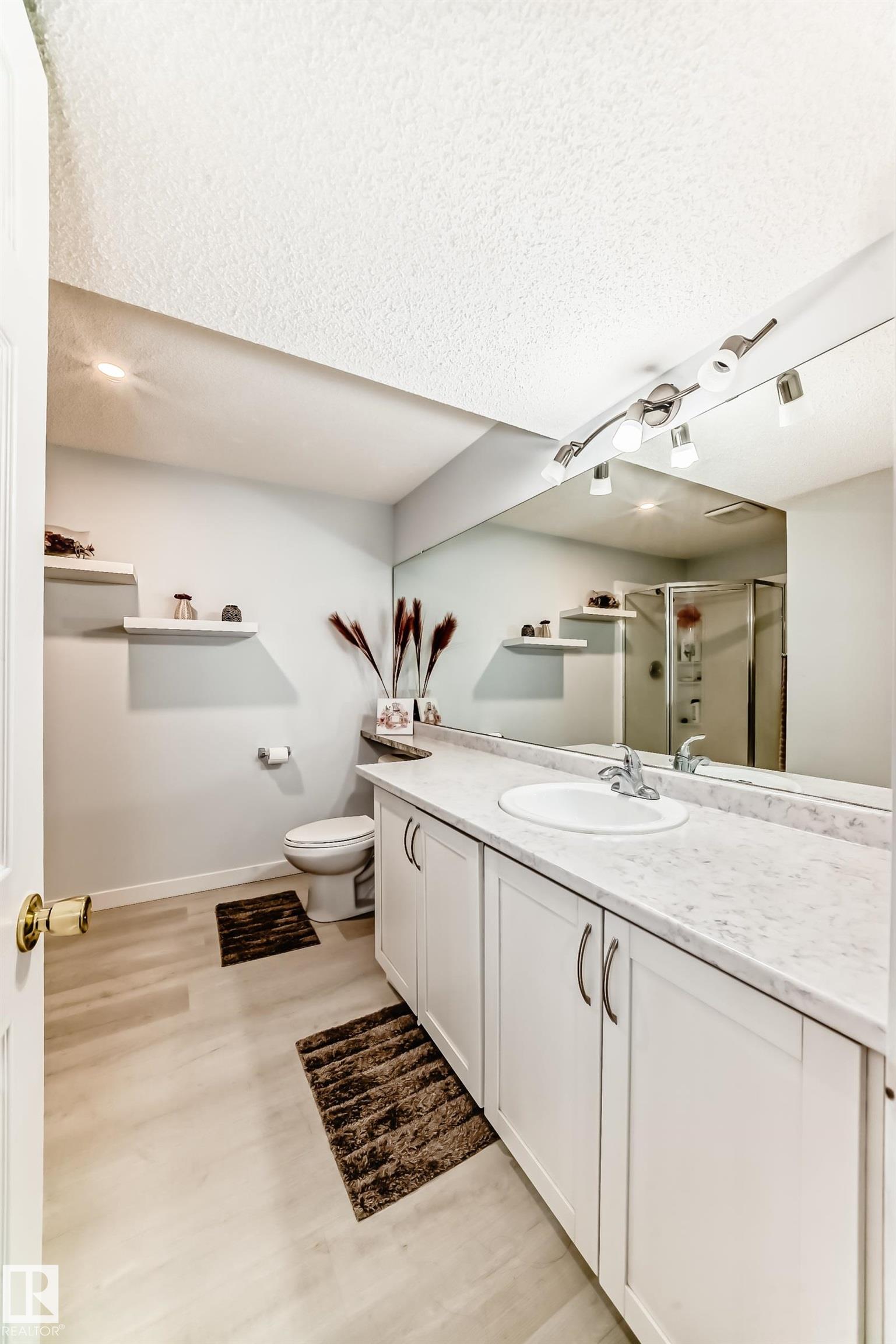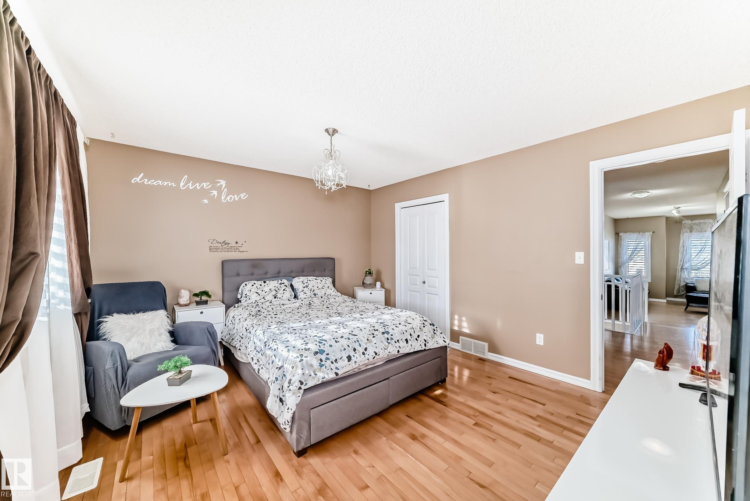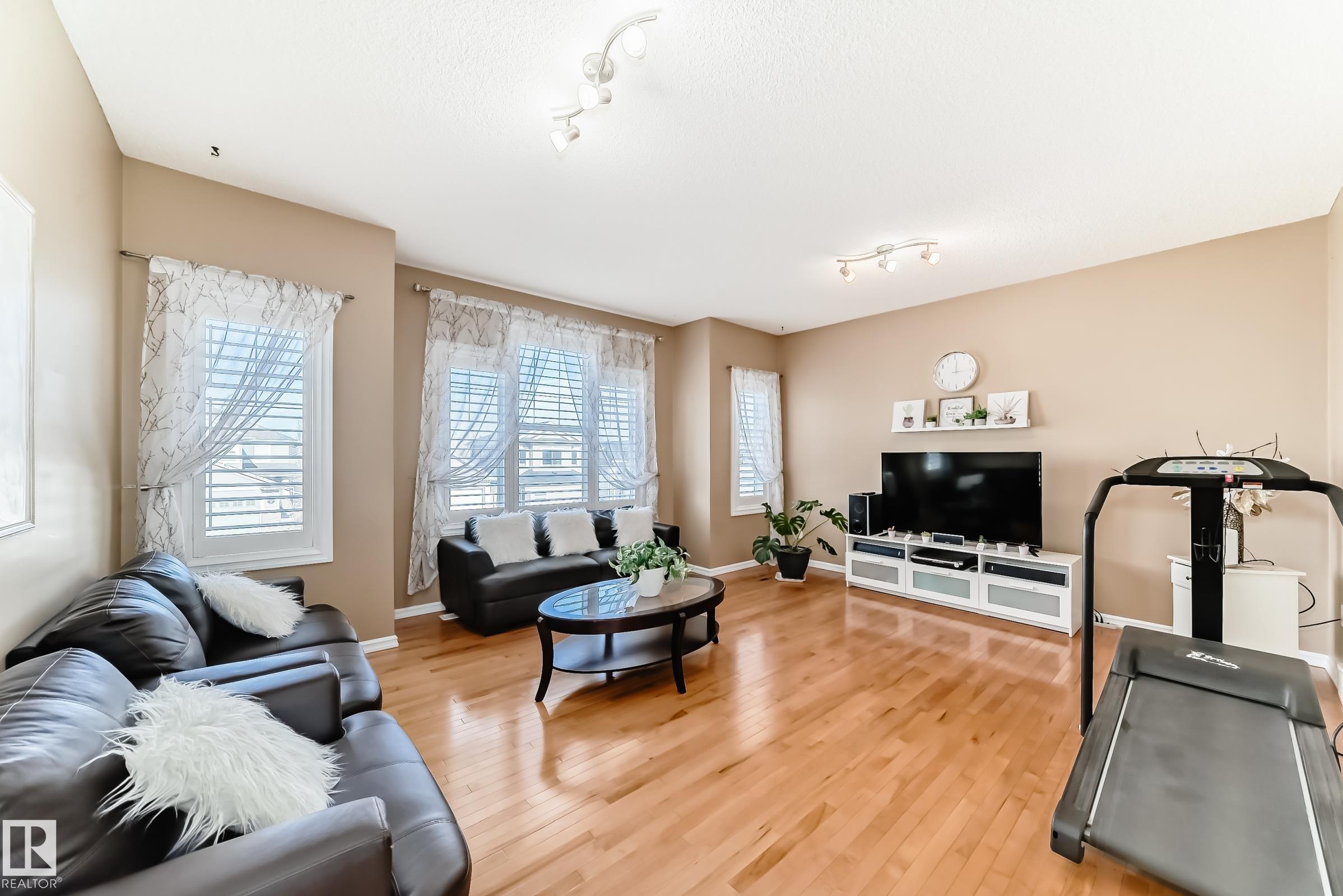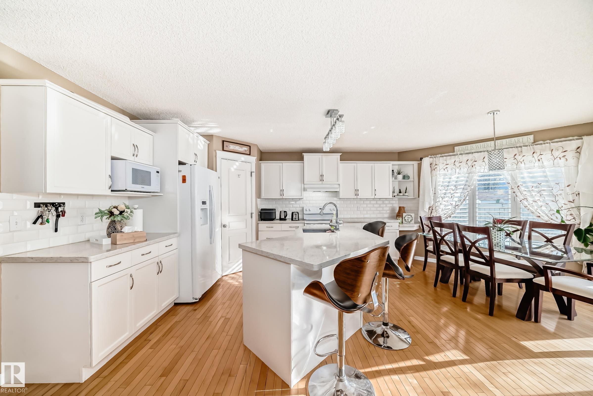 Immaculate family home in Lakeland Ridge featuring 4 bedrooms, 3.5 baths and a sunny SOUTH-facing backyard. Bright main floor offers upgraded hardwood, a spacious kitchen with white cabinets, corner pantry, Quartz counters and island overlooking the dining/living room with corner fireplace. The property comes with a laminate and hardwood throughout, a large bonus room, primary suite with walk-in closet and soaker tub, plus two generous bedrooms and 4pc bath. Finished basement adds a rec room and a 4th bedroom option, full bath and great storage. Enjoy the beautifully landscaped south yard with deck, stone patio and pond. Steps to parks, trails and more.