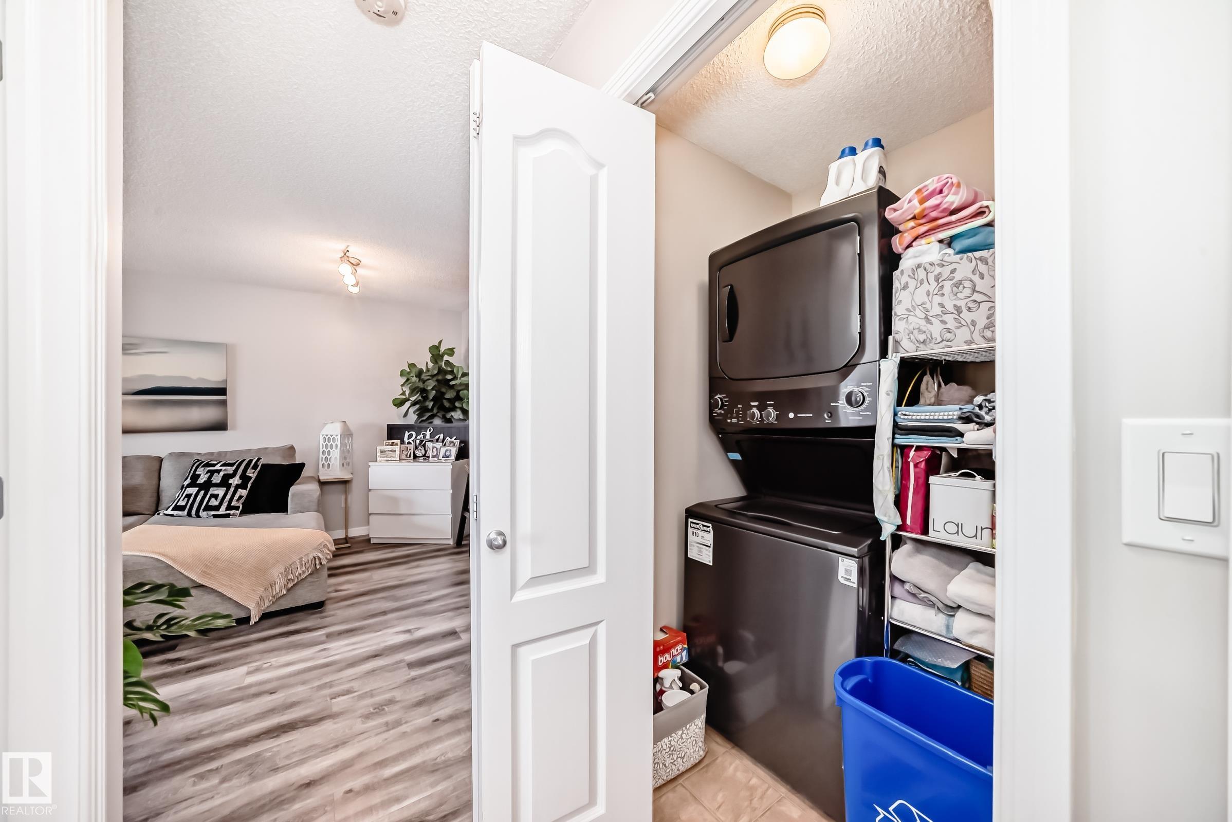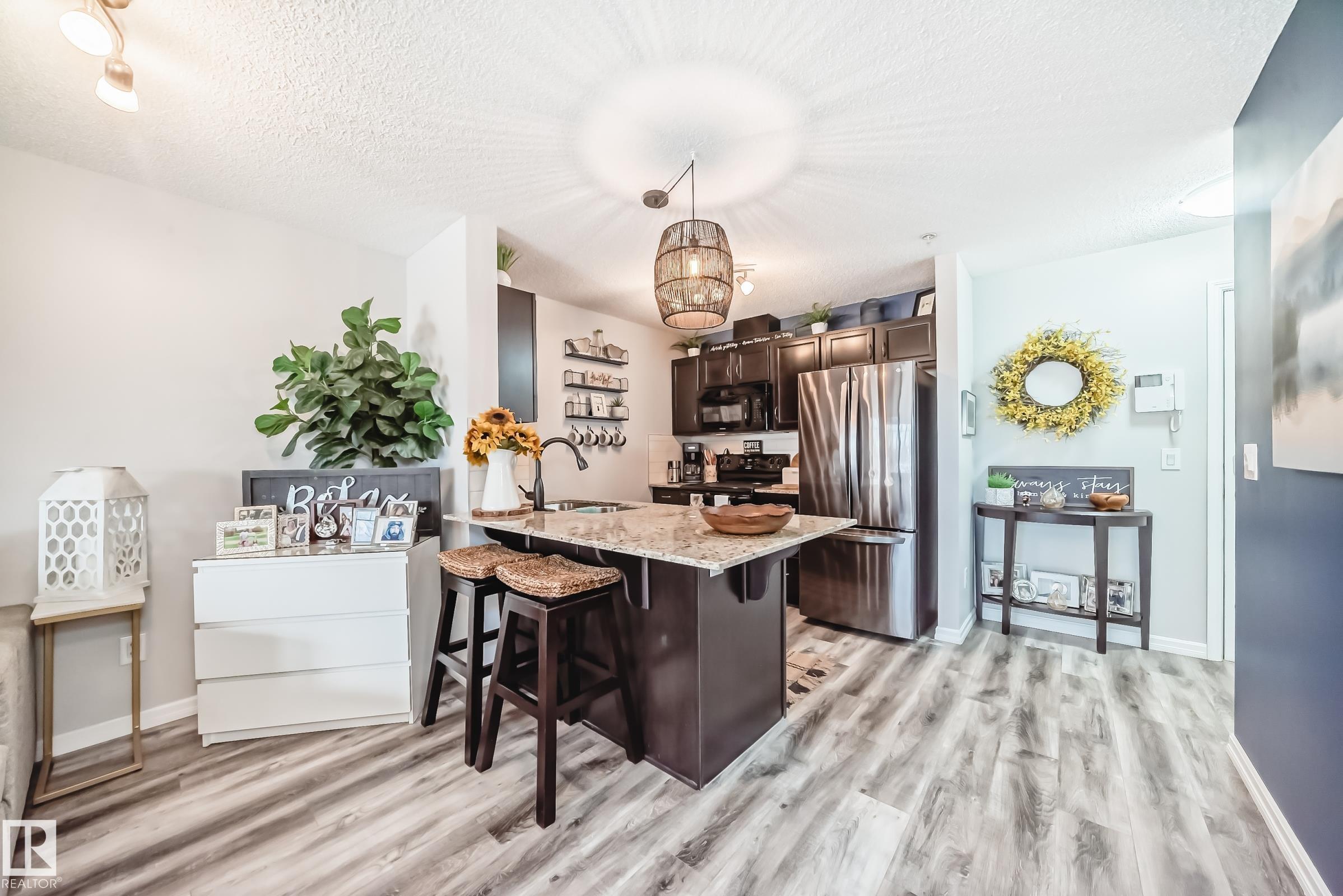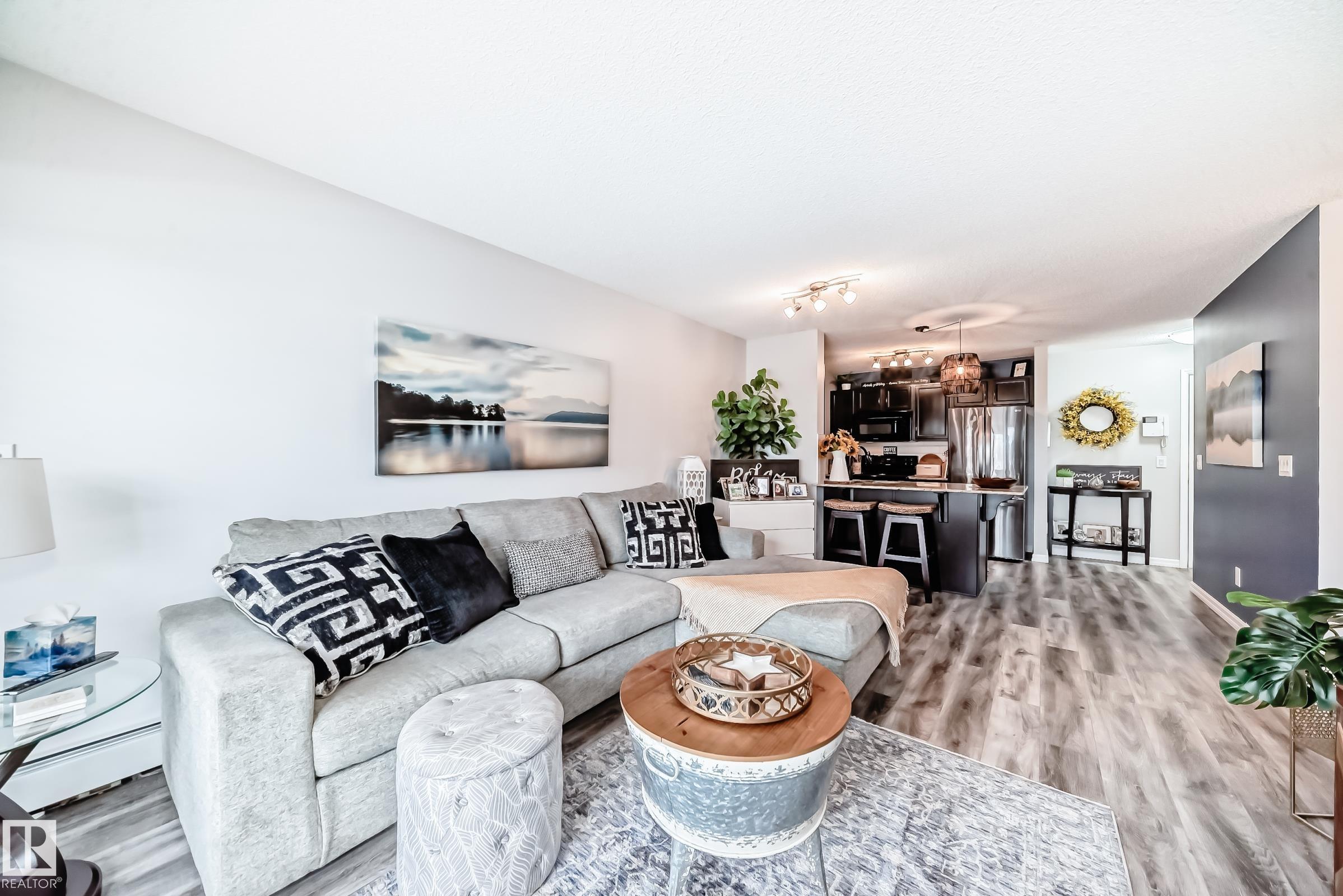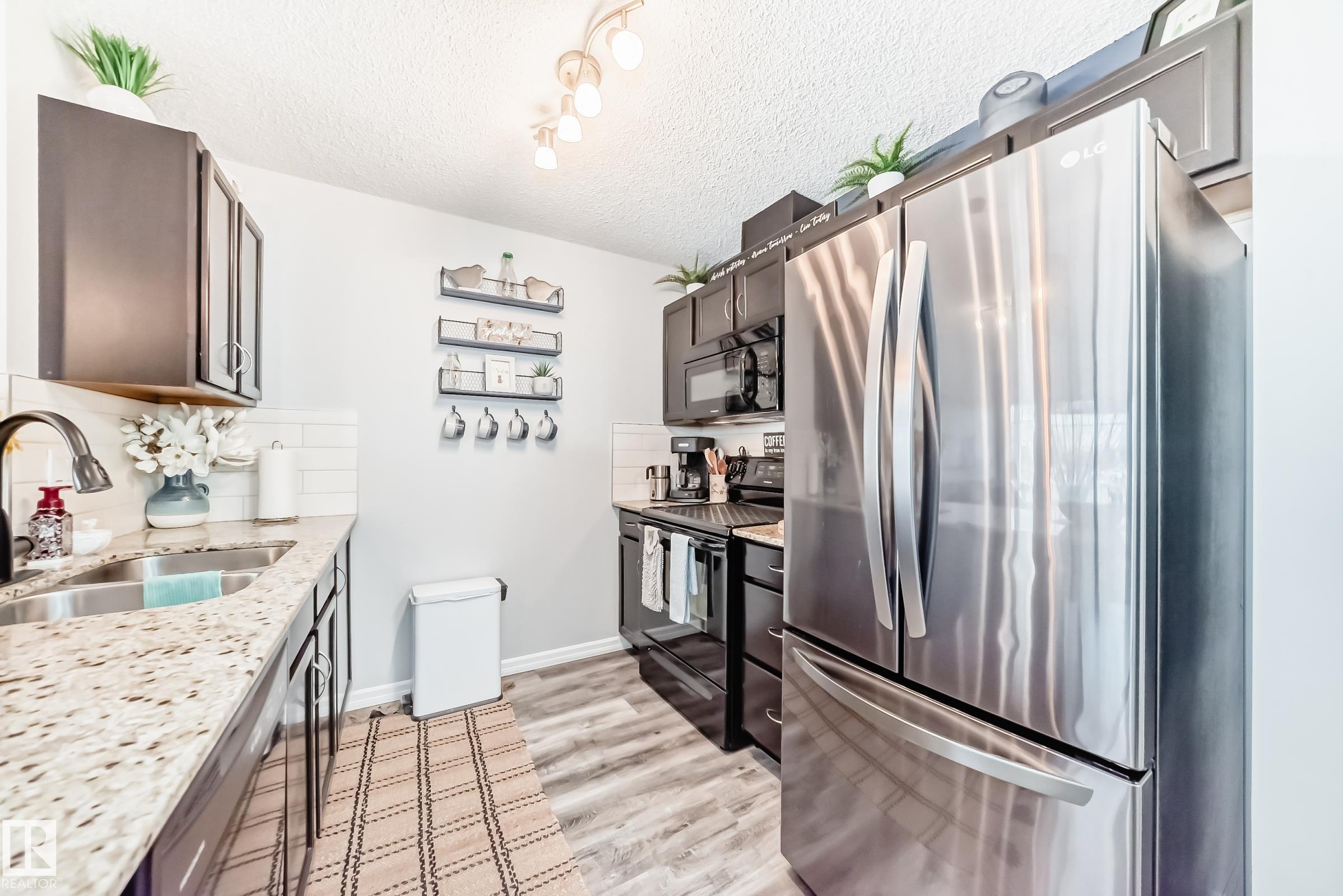 Beautiful, modern, and exceptionally well-maintained, this main floor unit shows like new! FULLY FURNISHED, upgraded 1-bedroom condo in Windsor Park offers both style and convenience. The kitchen is a standout, featuring rich dark espresso cabinetry, sleek black appliances, and elegant granite countertops--perfect for both everyday living and entertaining. The spacious living room is filled with natural light and opens onto a private deck through patio doors, creating a seamless indoor-outdoor flow. The primary bedroom is generously sized, providing a comfortable retreat. Additional highlights include in-suite laundry, a full 4-piece bathroom, and a versatile den/storage area. Stall parking is also included. Some of the upgrades : Newer flooring and refrigerator. Located in a clean, well-maintained building with a fitness room, this home is ideally situated within walking distance to restaurants, shopping, and everyday amenities. Perfect for first-time buyers or those looking to downsize in style!