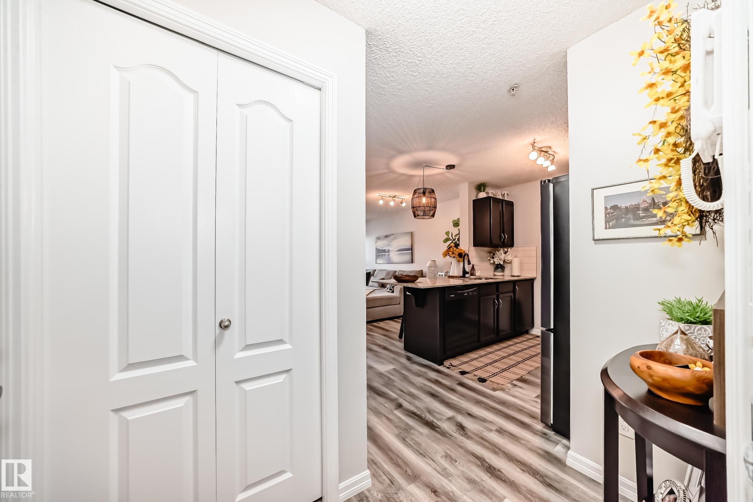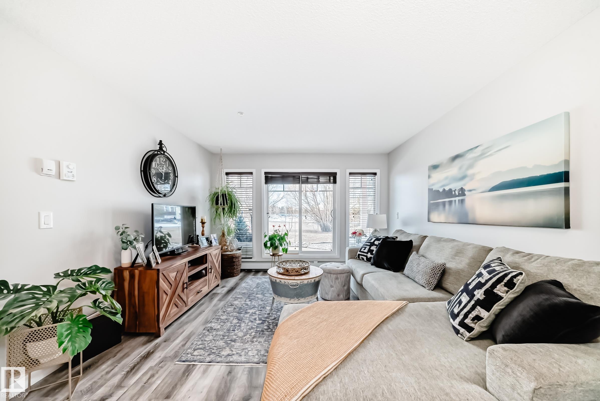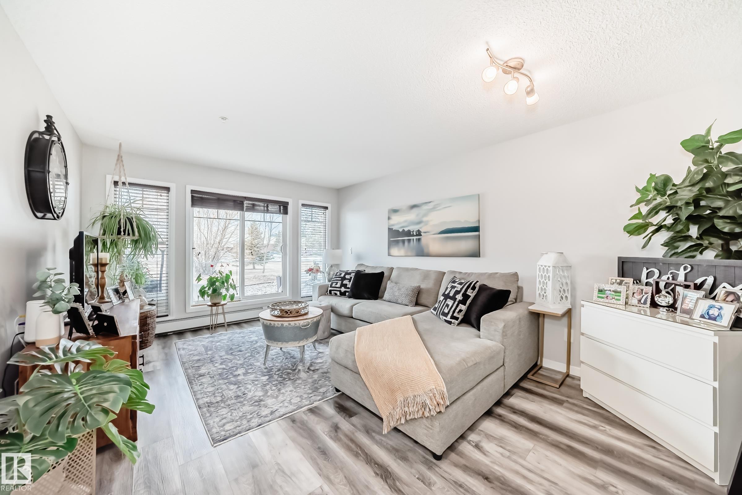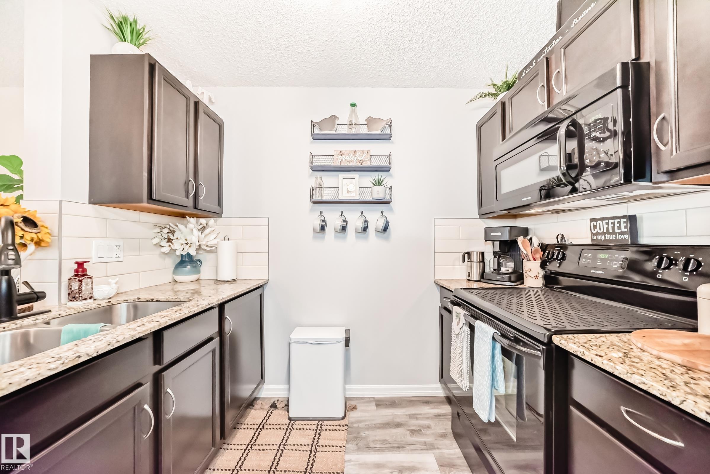 Beautiful, modern, and exceptionally well-maintained, this main floor unit shows like new! FULLY FURNISHED, upgraded 1-bedroom condo in Windsor Park offers both style and convenience. The kitchen is a standout, featuring rich dark espresso cabinetry, sleek black appliances, and elegant granite countertops--perfect for both everyday living and entertaining. The spacious living room is filled with natural light and opens onto a private deck through patio doors, creating a seamless indoor-outdoor flow. The primary bedroom is generously sized, providing a comfortable retreat. Additional highlights include in-suite laundry, a full 4-piece bathroom, and a versatile den/storage area. Stall parking is also included. Some of the upgrades : Newer flooring and refrigerator. Located in a clean, well-maintained building with a fitness room, this home is ideally situated within walking distance to restaurants, shopping, and everyday amenities. Perfect for first-time buyers or those looking to downsize in style!