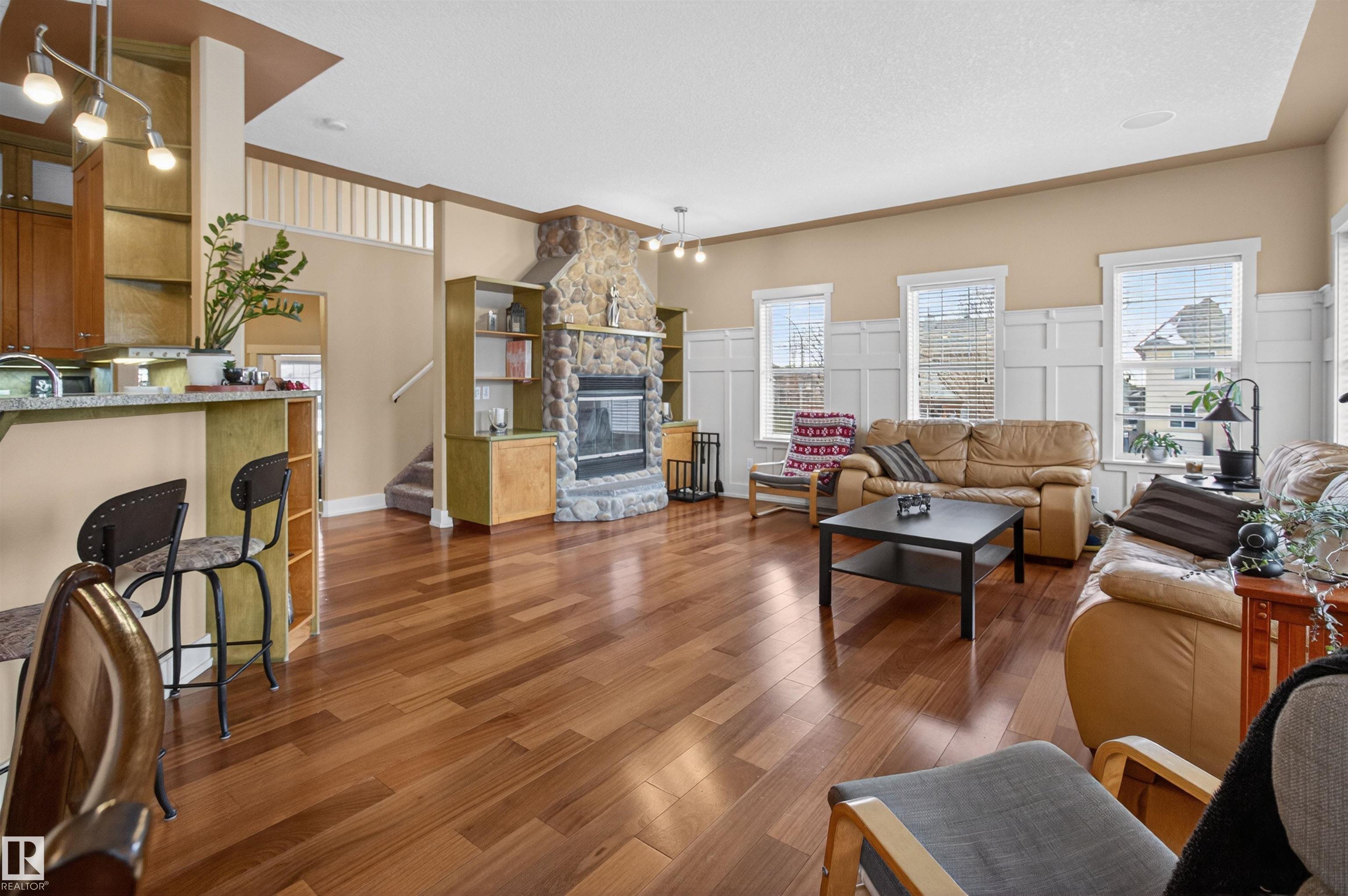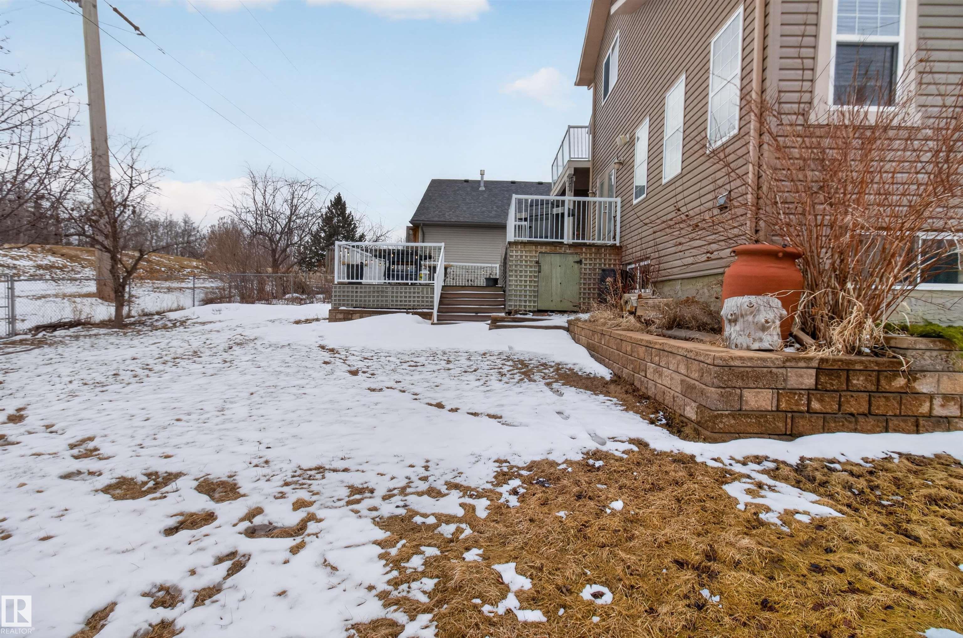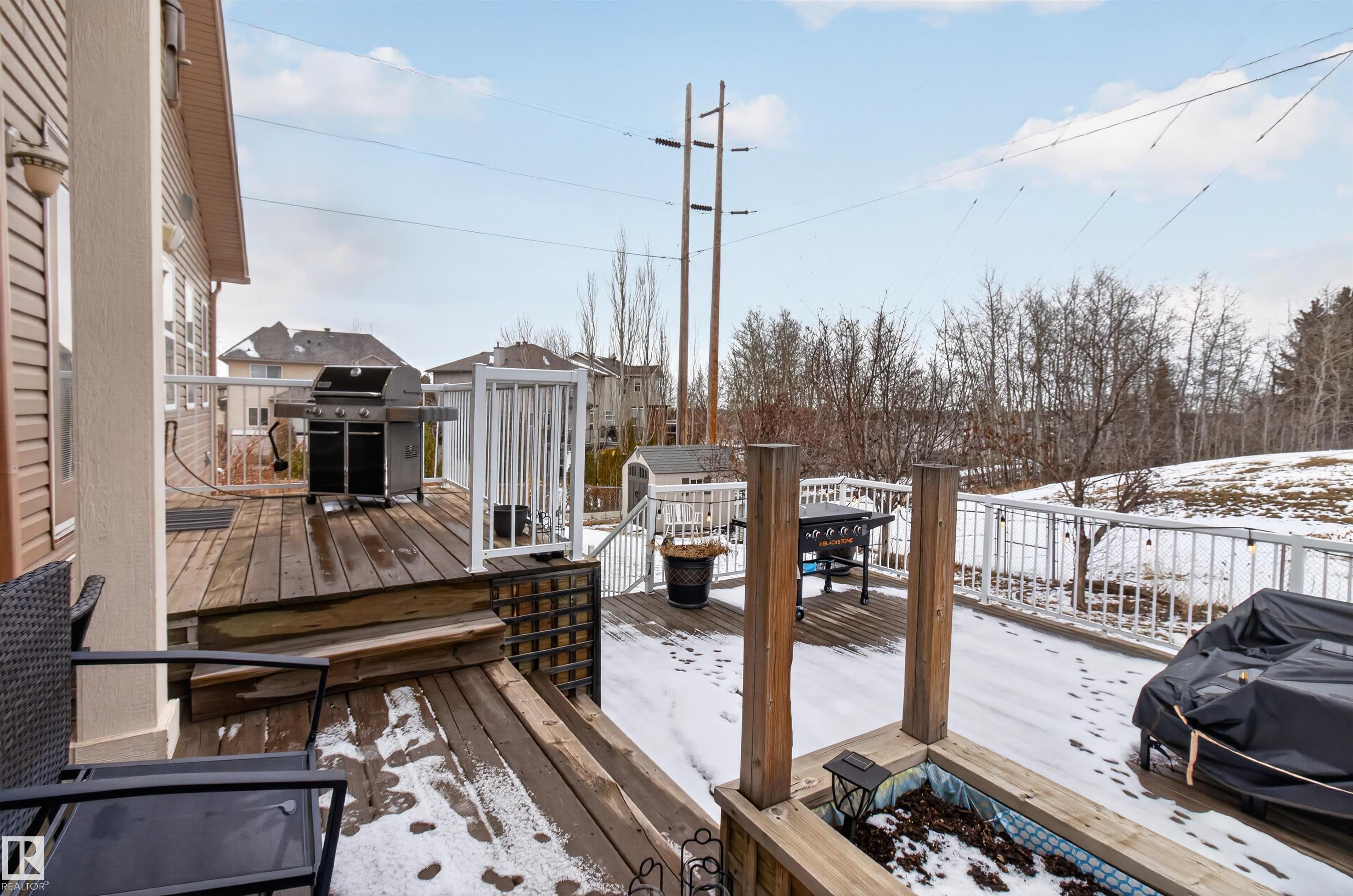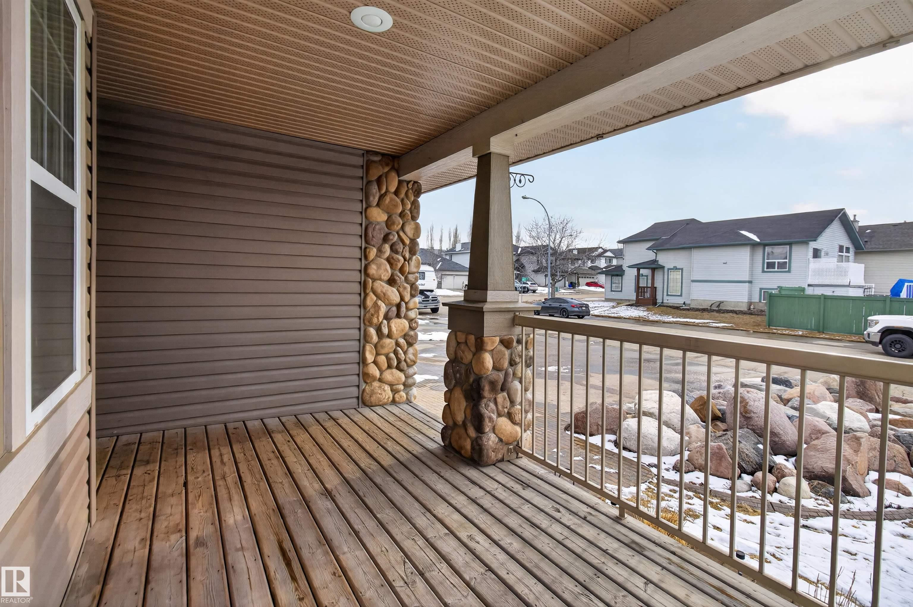 Looking for an amazing family home in Sherwood Park for under $700K? Come see this one today! Backing onto a walking trail is this GORGEOUS 2 storey on a HUGE LOT in Lakeland Ridge! Offering 2243 sq ft plus a FULLY FINISHED basement! 5 BEDROOMS PLUS DEN & 4 BATHROOMS. TRIPLE TANDEM & HEATED GARAGE! Open concept with a stylish kitchen including Granite countertops & a generous dining area. Off the dining area are garden doors to a 3 tiered deck. The spacious living room features a forced air wood-burning fireplace & hardwood floors. Main floor laundry, a 2 piece bathroom & a den as well. Upstairs are 3 large bedrooms, a 4 piece bathroom and a 5 piece ensuite the Primary Bedroom features a beautiful 5 piece ensuite, 2 walk-in closets and a balcony for your pleasure and enjoyment! The basement has epoxy flooring, IN-FLOOR HEATING, a large Rec Room, 2 bedrooms & a 3 piece bathroom. Fantastic backyard! Beautiful curb appeal with an attractive river rock exterior. The stamped concrete driveway fits 4 vehicles!