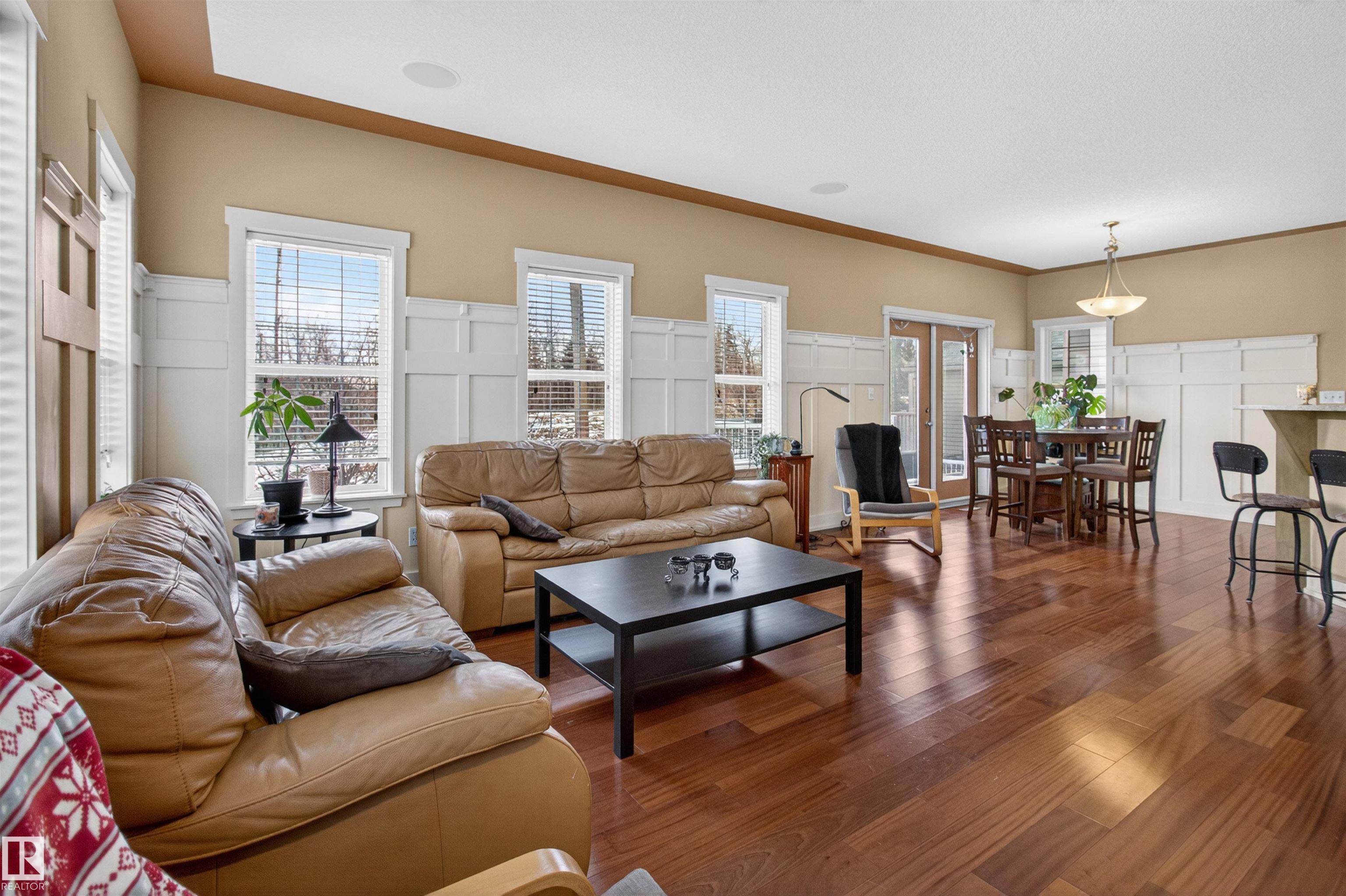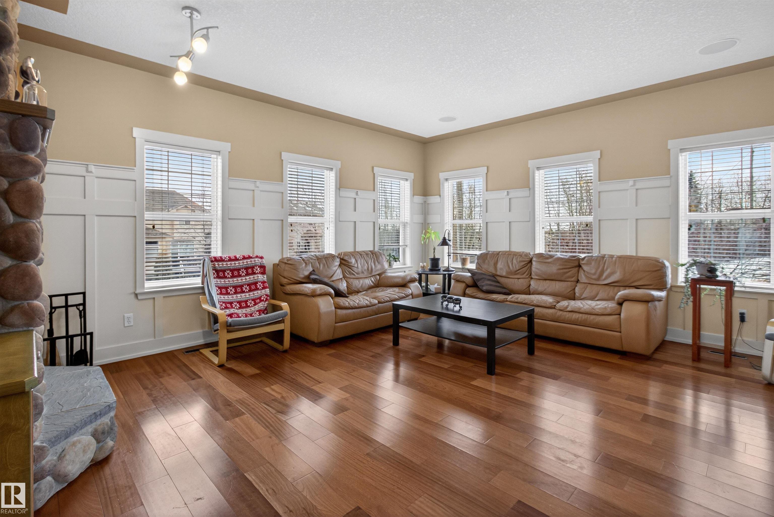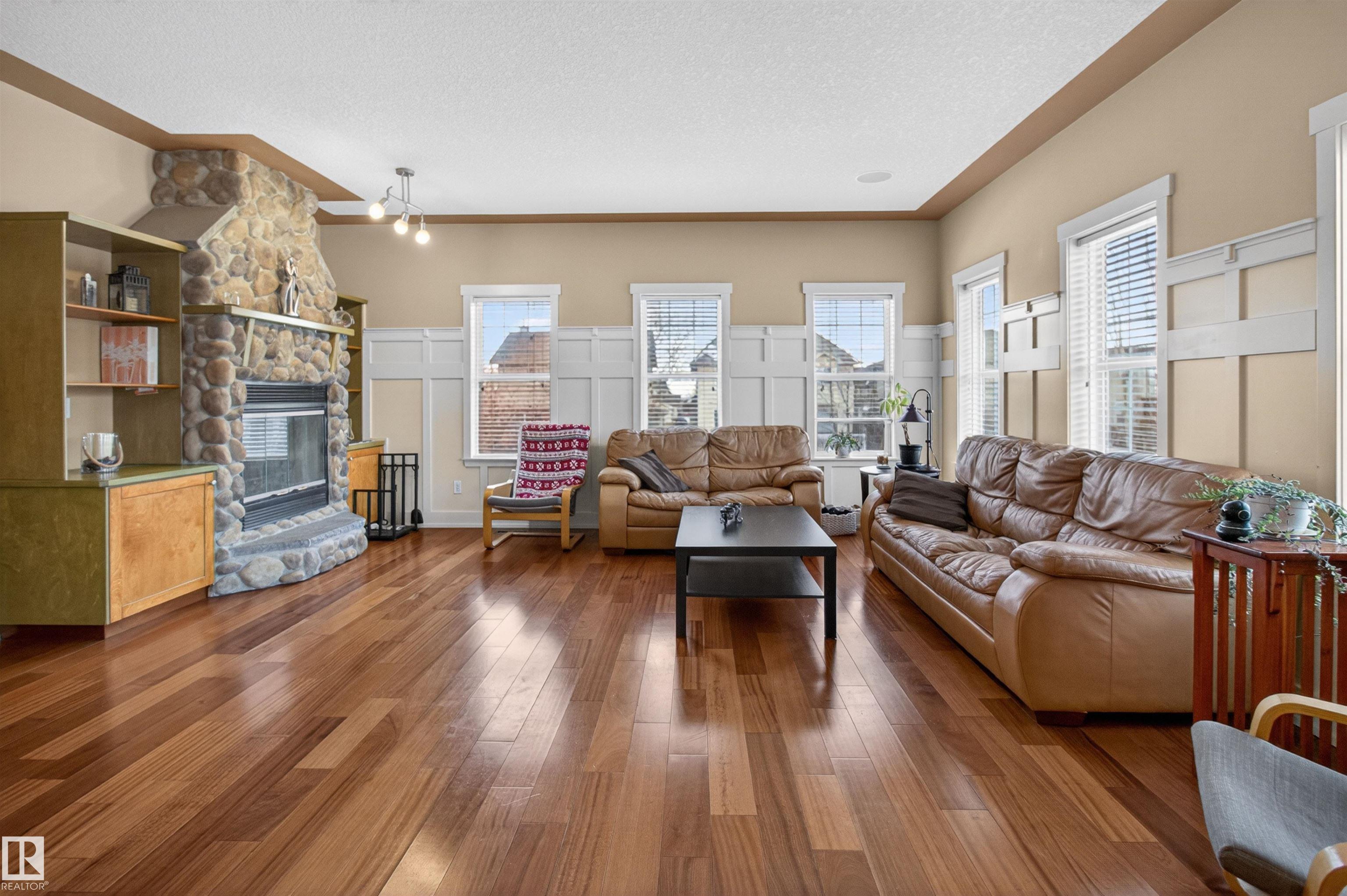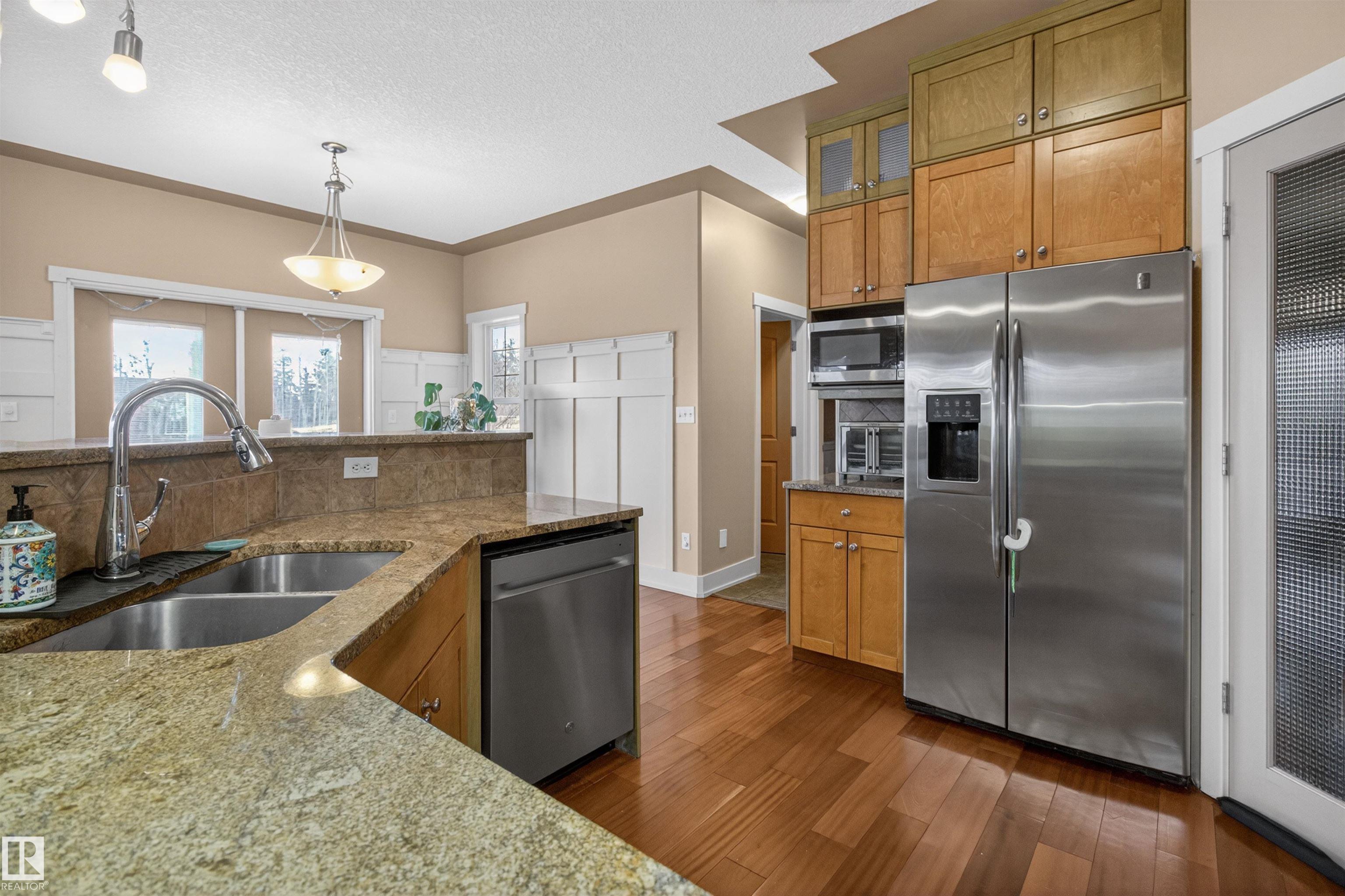Looking for an amazing family home in Sherwood Park for under $700K? Come see this one today! Backing onto a walking trail is this GORGEOUS 2 storey on a HUGE LOT in Lakeland Ridge! Offering 2243 sq ft plus a FULLY FINISHED basement! 5 BEDROOMS PLUS DEN & 4 BATHROOMS. TRIPLE TANDEM & HEATED GARAGE! Open concept with a stylish kitchen including Granite countertops & a generous dining area. Off the dining area are garden doors to a 3 tiered deck. The spacious living room features a forced air wood-burning fireplace & hardwood floors. Main floor laundry, a 2 piece bathroom & a den as well. Upstairs are 3 large bedrooms, a 4 piece bathroom and a 5 piece ensuite the Primary Bedroom features a beautiful 5 piece ensuite, 2 walk-in closets and a balcony for your pleasure and enjoyment! The basement has epoxy flooring, IN-FLOOR HEATING, a large Rec Room, 2 bedrooms & a 3 piece bathroom. Fantastic backyard! Beautiful curb appeal with an attractive river rock exterior. The stamped concrete driveway fits 4 vehicles!