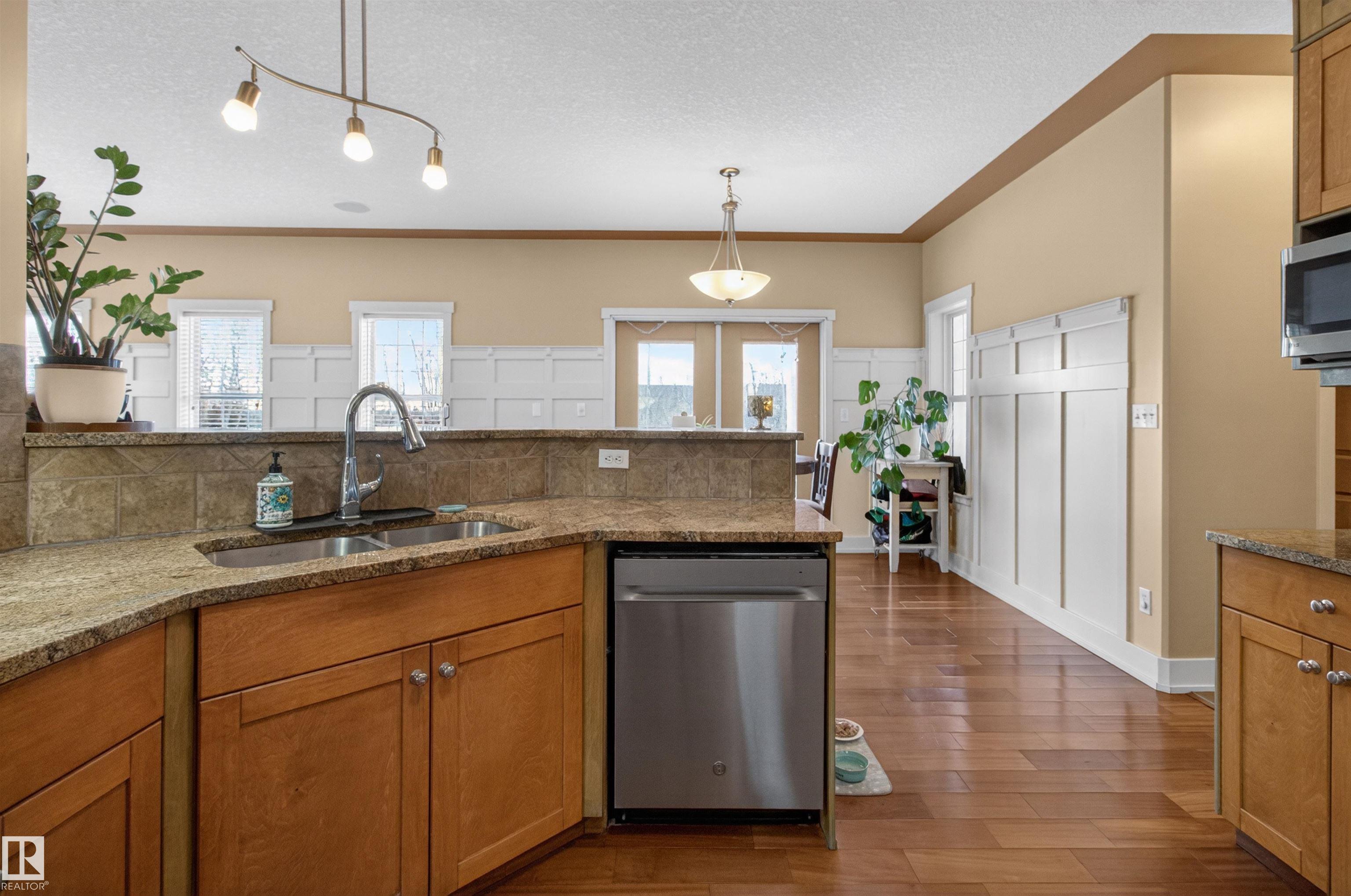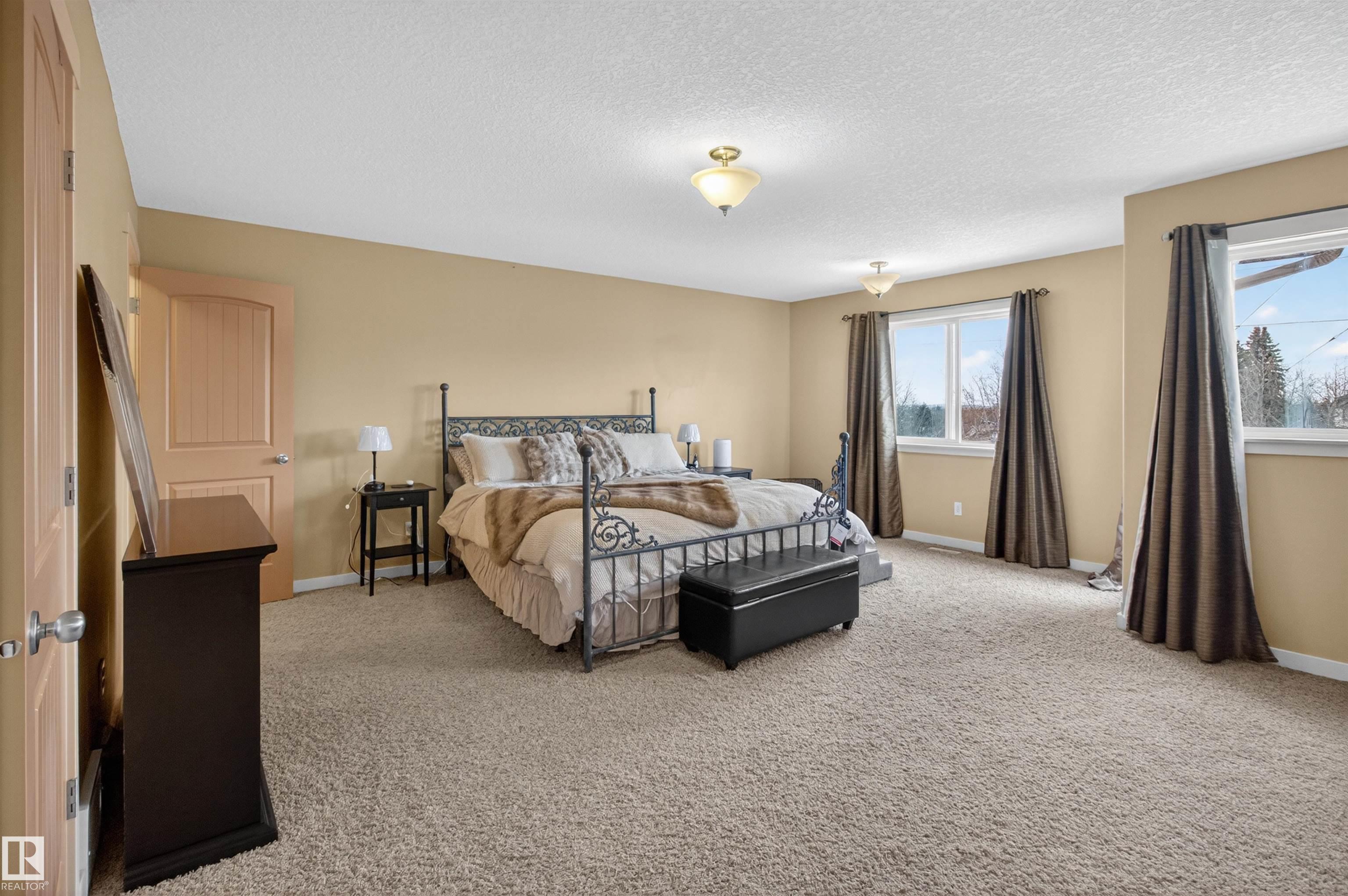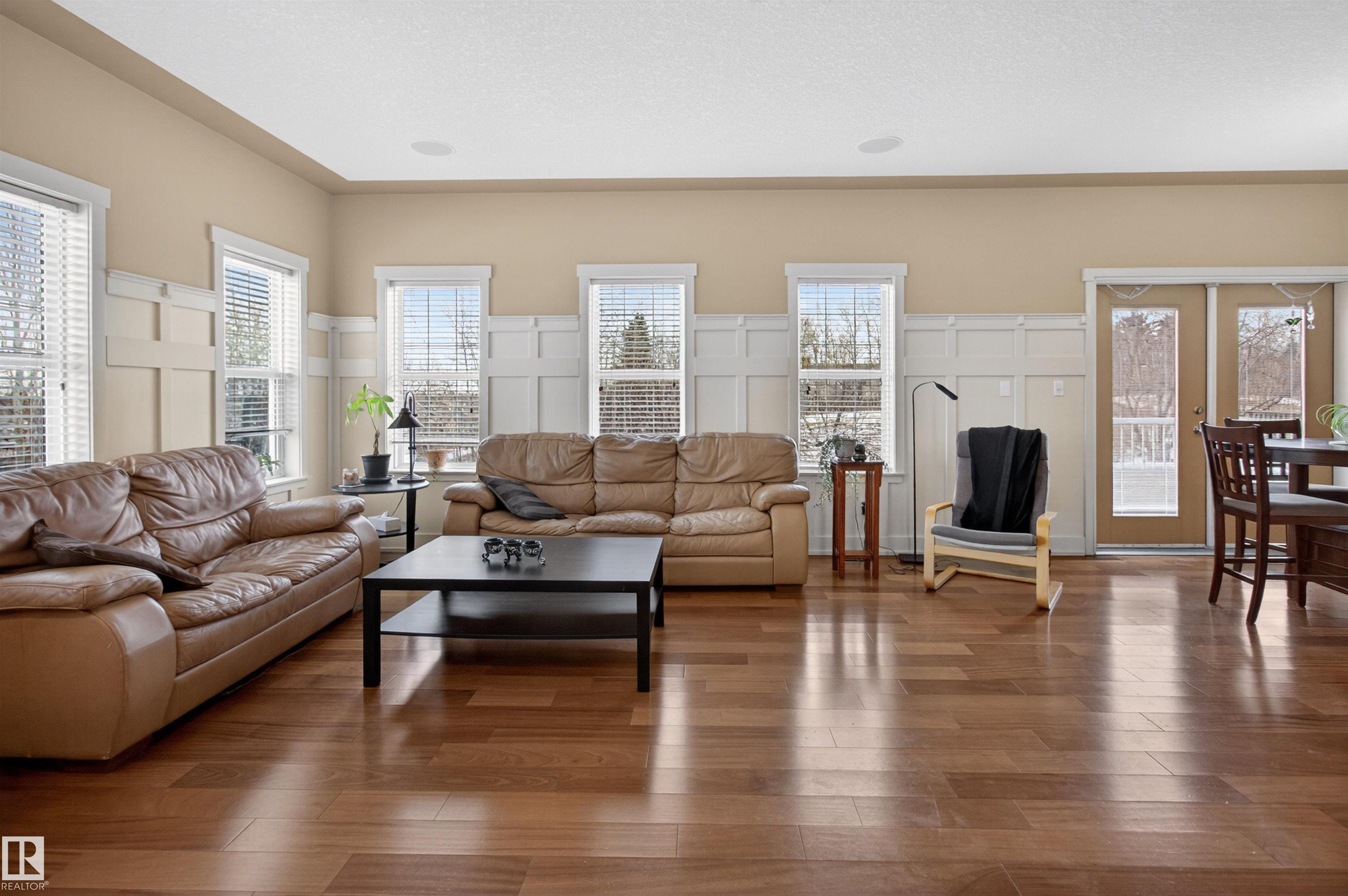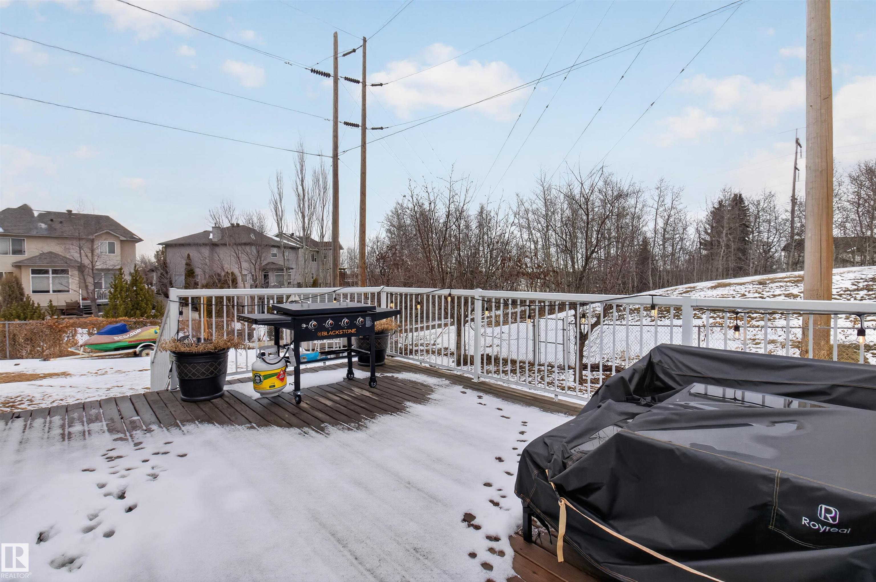Looking for an amazing family home in Sherwood Park for under $700K? Come see this one today! Backing onto a walking trail is this GORGEOUS 2 storey on a HUGE LOT in Lakeland Ridge! Offering 2243 sq ft plus a FULLY FINISHED basement! 5 BEDROOMS PLUS DEN & 4 BATHROOMS. TRIPLE TANDEM & HEATED GARAGE! Open concept with a stylish kitchen including Granite countertops & a generous dining area. Off the dining area are garden doors to a 3 tiered deck. The spacious living room features a forced air wood-burning fireplace & hardwood floors. Main floor laundry, a 2 piece bathroom & a den as well. Upstairs are 3 large bedrooms, a 4 piece bathroom and a 5 piece ensuite the Primary Bedroom features a beautiful 5 piece ensuite, 2 walk-in closets and a balcony for your pleasure and enjoyment! The basement has epoxy flooring, IN-FLOOR HEATING, a large Rec Room, 2 bedrooms & a 3 piece bathroom. Fantastic backyard! Beautiful curb appeal with an attractive river rock exterior. The stamped concrete driveway fits 4 vehicles!