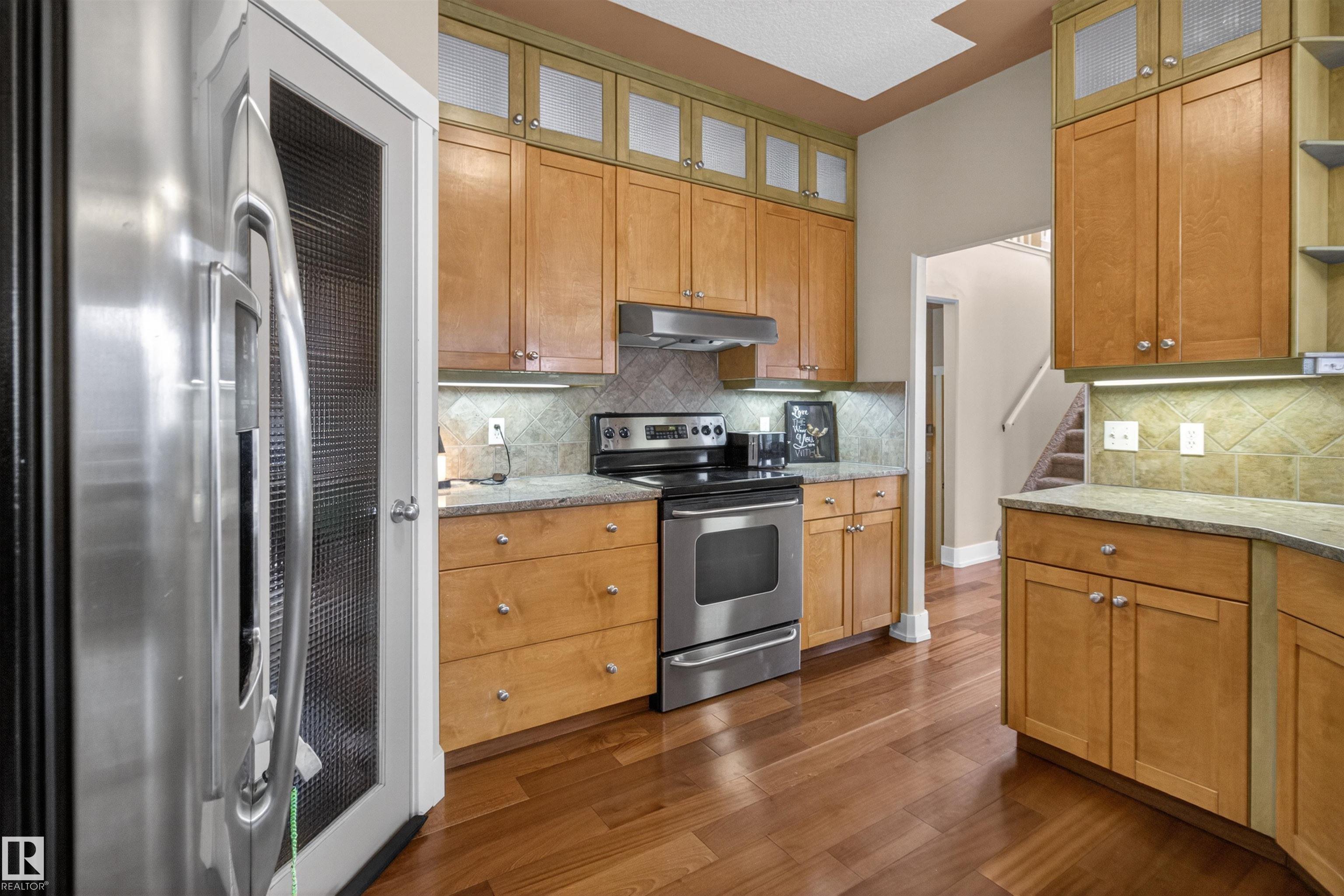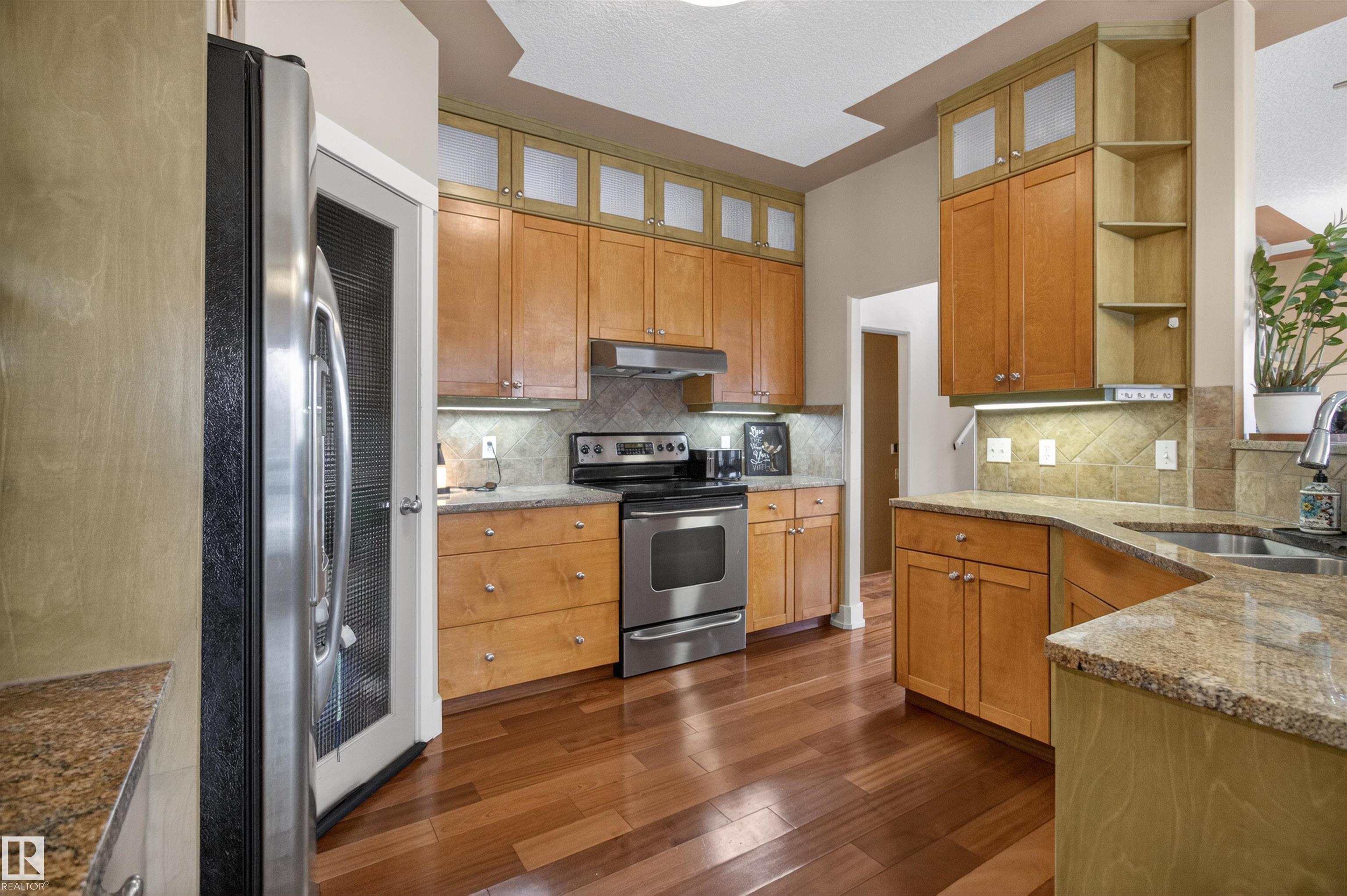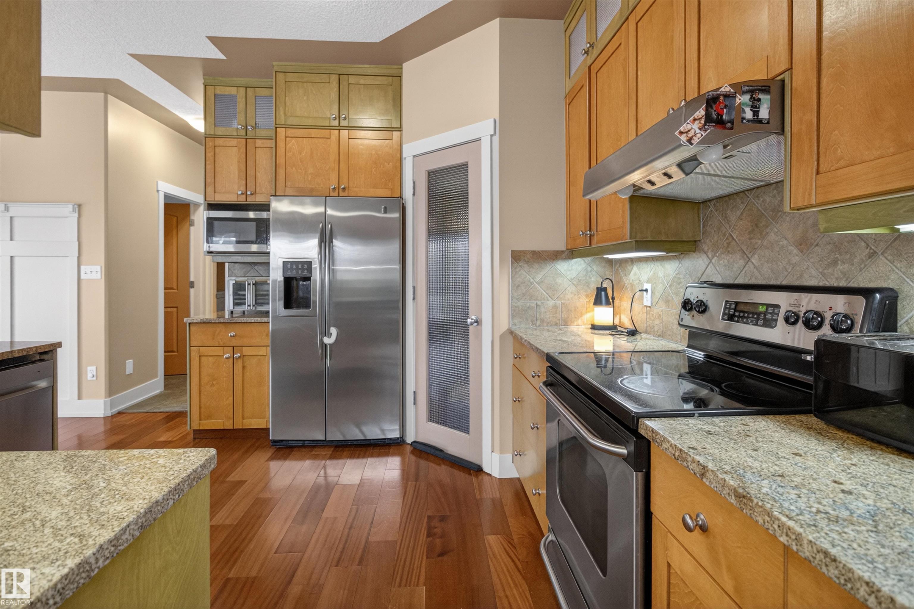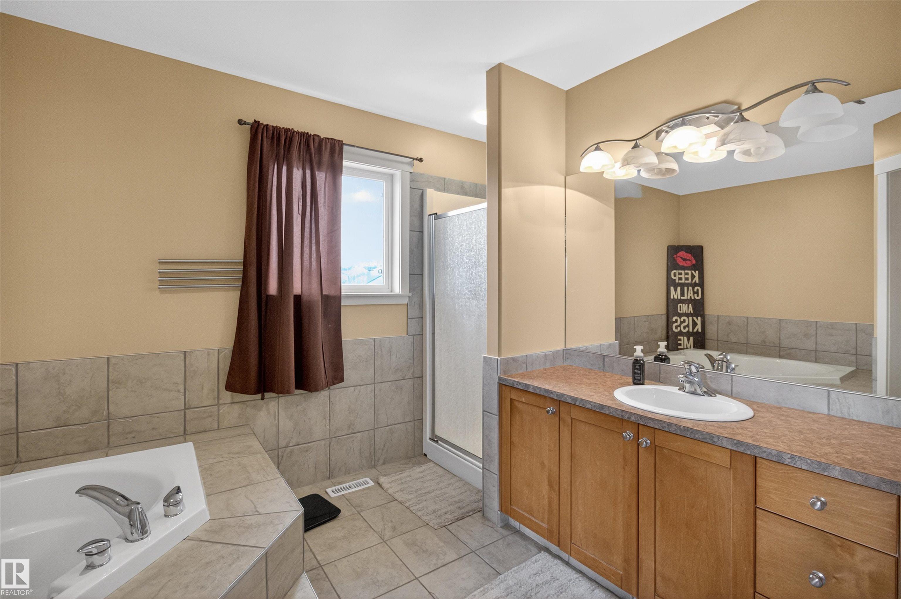 Looking for an amazing family home in Sherwood Park for under $700K? Come see this one today! Backing onto a walking trail is this GORGEOUS 2 storey on a HUGE LOT in Lakeland Ridge! Offering 2243 sq ft plus a FULLY FINISHED basement! 5 BEDROOMS PLUS DEN & 4 BATHROOMS. TRIPLE TANDEM & HEATED GARAGE! Open concept with a stylish kitchen including Granite countertops & a generous dining area. Off the dining area are garden doors to a 3 tiered deck. The spacious living room features a forced air wood-burning fireplace & hardwood floors. Main floor laundry, a 2 piece bathroom & a den as well. Upstairs are 3 large bedrooms, a 4 piece bathroom and a 5 piece ensuite the Primary Bedroom features a beautiful 5 piece ensuite, 2 walk-in closets and a balcony for your pleasure and enjoyment! The basement has epoxy flooring, IN-FLOOR HEATING, a large Rec Room, 2 bedrooms & a 3 piece bathroom. Fantastic backyard! Beautiful curb appeal with an attractive river rock exterior. The stamped concrete driveway fits 4 vehicles!