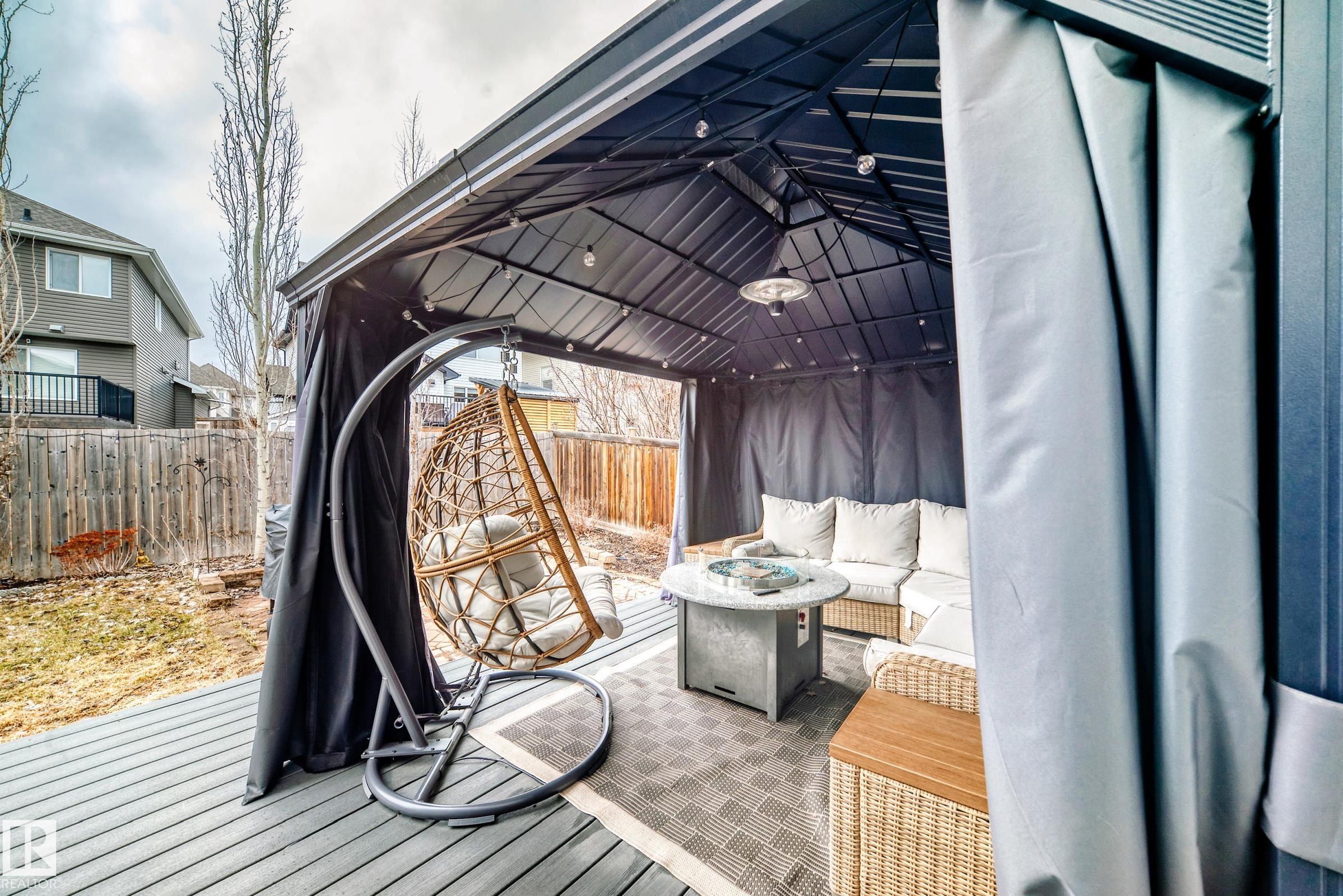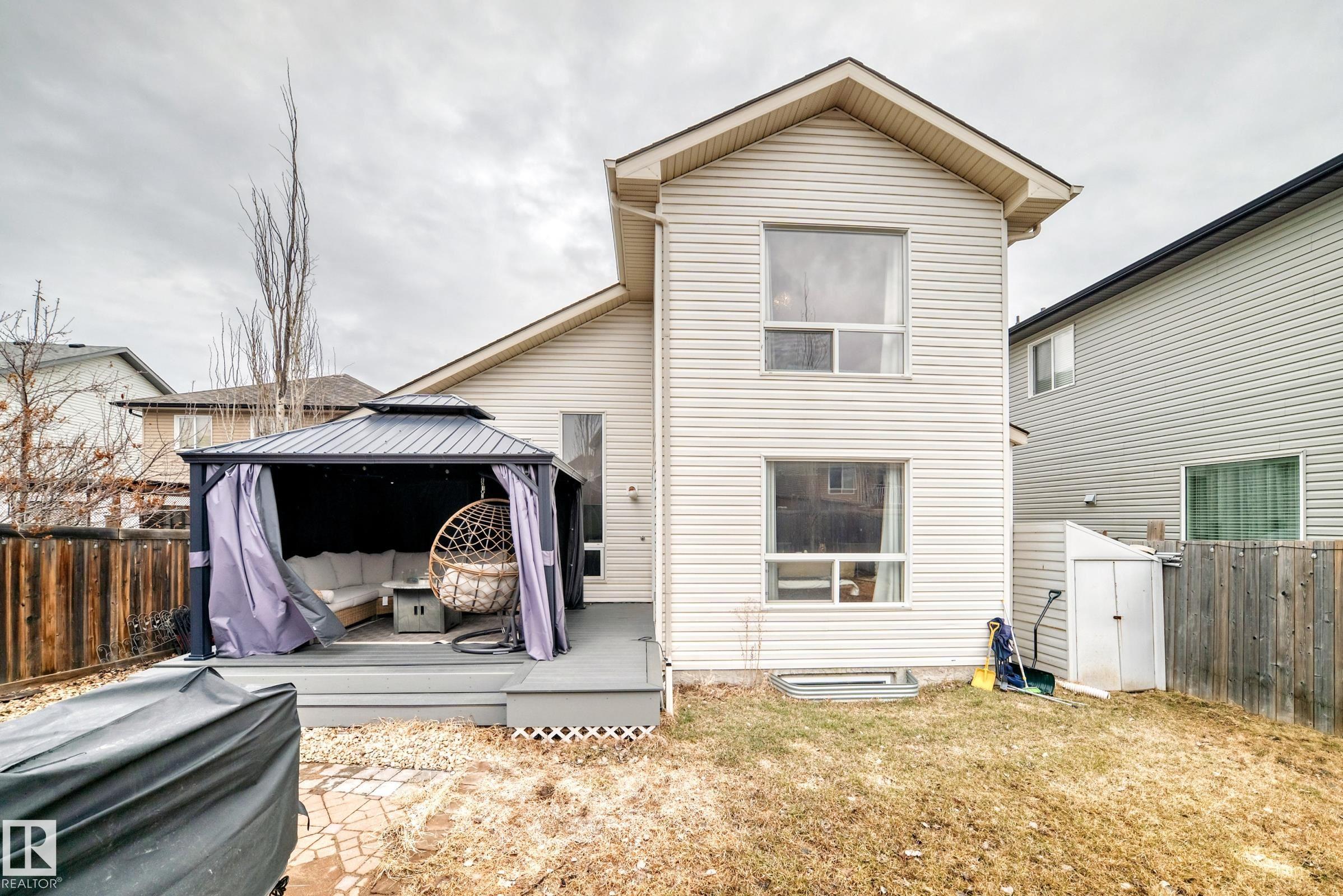 Stunning former SHOW HOME offering over 2,845 sq.ft. of beautifully designed living space, showcasing quality finishes and timeless elegance throughout. This impressive 3+1 bedroom, 3.5 bath home features den and a spectacular Media/Theatre room complete with projector, screen and ambient lighting for the ultimate entertainment experience. The well-appointed kitchen boasts extended cabinetry, stainless steel appliances, roll-out pot drawers and a pantry, flowing seamlessly into the bright great room with skylights, decorative columns and a cozy gas fireplace. Rich hardwood flooring enhances the foyer, hall, den, great room, kitchen and dining areas, complemented by ceramic tile in the mudroom and baths. The spacious primary retreat offers a walk-in closet and luxurious 5-pc ensuite with relaxing jetted tub. Includes custom window coverings, security system and a private rear deck with gazebo. Ideally located near schools in a welcoming, family-friendly neighbourhood.